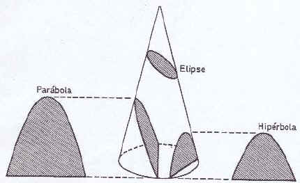 As Cónicas de ApolónioEnquanto Menaichmos, um matemático da escola de Atenas que repartiu os seus ensinamentos até 350 a.C., julgava que estas curvas se obtinham por meio de cortes efectuados sempre em ângulo recto em relação à superfície do cone e que assim se obtinham diferentes tipos de curva para diferentes ângulos de abertura do cone, Apolónio achou que os quatro géneros de curvas se obtinham cortando um mesmo cone sob diferentes ângulos.